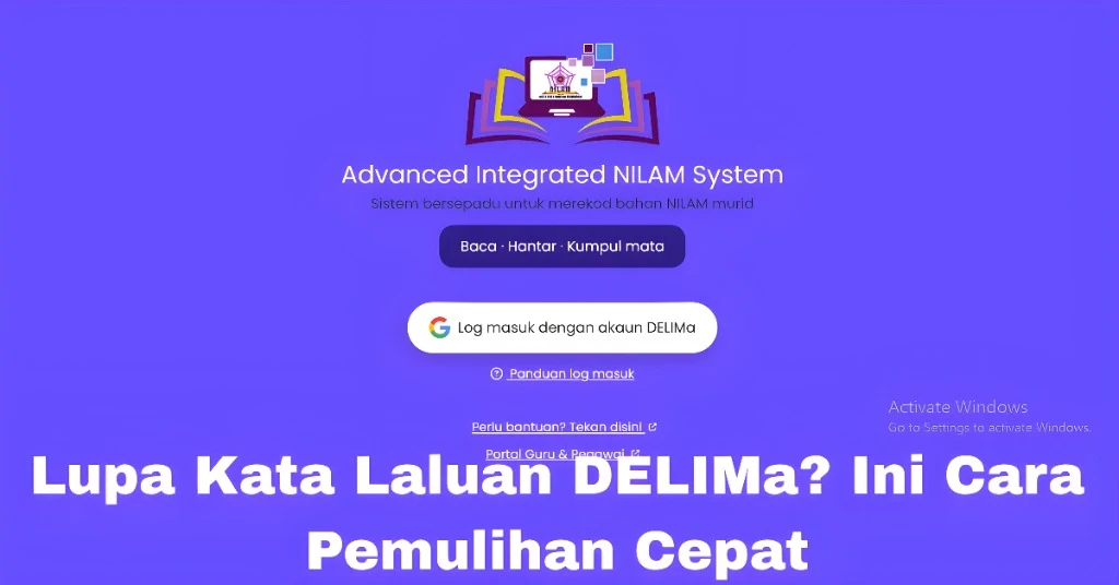DELIMa (Data Elektronik Laporan Interaktif Murid) adalah sistem yang digunakan untuk log masuk ke platform AINS NILAM. Melalui sistem ini, pelajar dapat merekodkan aktiviti bacaan mereka dalam Program NILAM (Nadi Ilmu Amalan Membaca). Namun, jika anda terlupa kata laluan DELIMa, anda perlu mengikuti langkah-langkah berikut untuk pemulihan. Anda juga boleh membaca:Â Cara Menyelesaikan Masalah Log Masuk AINS NILAM Biasa